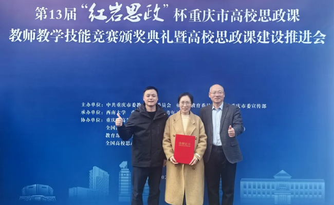 近日,由重庆市委教育工委、重庆市教委、重庆市委宣传部主办,西南大学和重庆日报理论视频栏目《理响青年》承办的第13届“红岩思政”杯重庆市高校思政课教师教学技能竞赛决赛落下帷幕。经过激烈比拼,重庆工贸职业技术学院陈君老师荣获复赛《形势与政策》分课程组二等奖,吴茜老师荣获复赛分课程《思想道德与法治》三等奖。陈君在高职高专院校组总决赛中荣获二等奖。