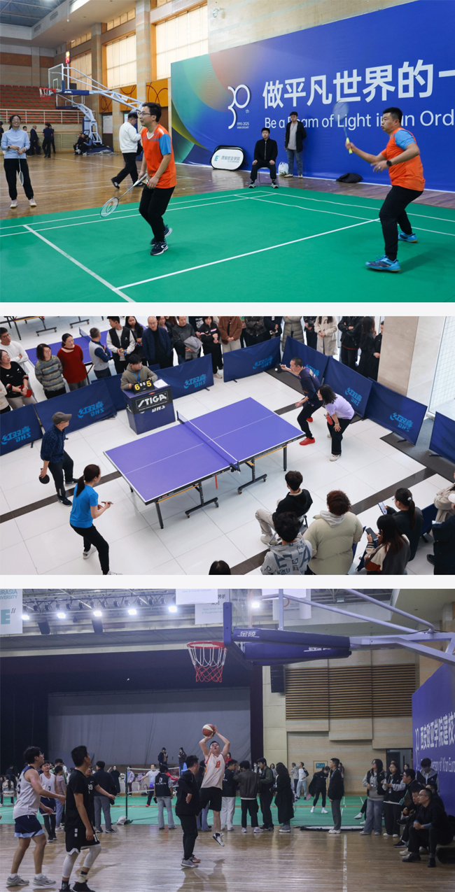 11月21日,历时 16 天的西安欧亚学院2025年教职工篮球、羽毛球、乒乓球团体比赛在体育馆正式落下帷幕。本次赛事由校工会主办,职业教育学院体育系承办,在比赛规程的设计中,既兼具“三球”比赛的竞技性与趣味性,提升教职工体育赛事的参与度和体验感;又以体育为纽带凝聚团队力量,充分展现欧亚人积极向上、团结友善的精神风貌。