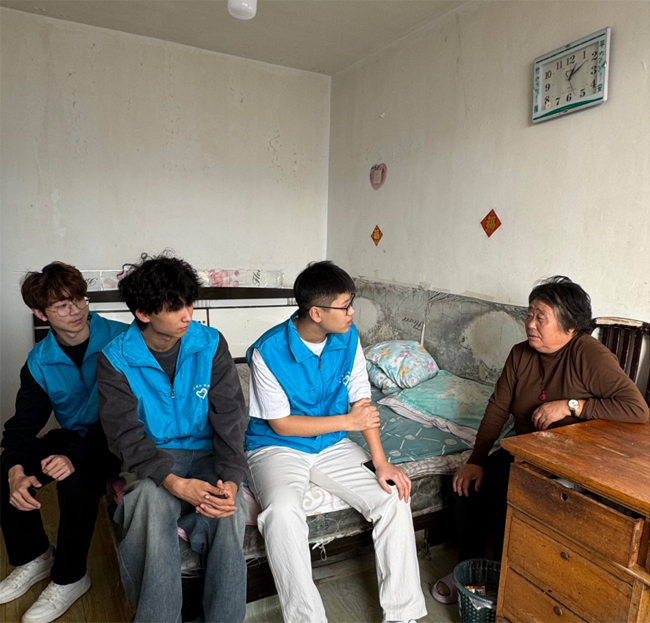 近日,白城医学高等专科学校眼视光学院“白医光明行”志愿服务团队的志愿者们满怀热忱与诚挚关怀,走进新兴社区开展“青暖夕阳”助老服务活动,专程探望了社区独居老人于淑琴,以实际行动为老人送去温暖与陪伴,使这一平凡之日洋溢着温情与感动。