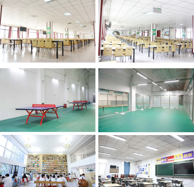 学校各学部拥有独立教学大楼,教室配备空调、饮水机、多媒体教学设备等,保障日常高效学习;室外操场、羽毛球场等,室内多功能艺体馆,满足学生全天候、多样化的运动需求;独立设置书画教室、音乐教室、实验室、生物科学教室,滋养学生的艺术才华。