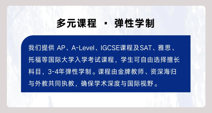 融合多种国际国内先进课程,并自主开发更适合中国学生的课程与教学模式,打造 “国内高校+海外名校”双轨升学体系。