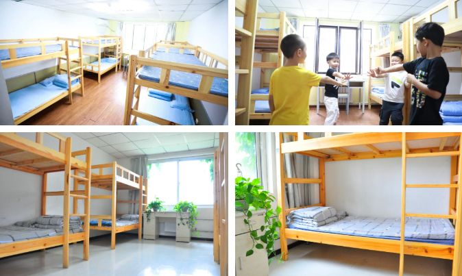 学生宿舍4-6人间,有空调和独立卫浴,24小时供应热水,每层配备饮水机、洗衣机,生活老师24小时值岗在线,为学生营造家一般温暖的住宿环境。