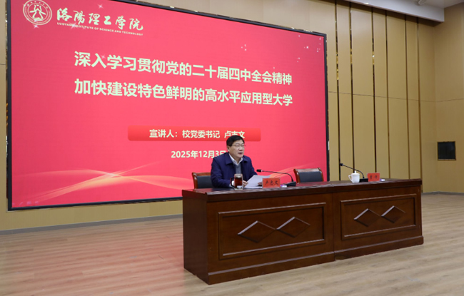 12月3日,洛阳理工学院召开学习贯彻党的二十届四中全会精神宣讲会。党委书记卢志文以《深入学习贯彻党的二十届四中全会精神 加快建设特色鲜明的高水平应用型大学》为题作宣讲报告。校领导、副处级以上干部、教师代表和学生代表300余人参加会议。会议由党委副书记、工会主席曾涛主持。
