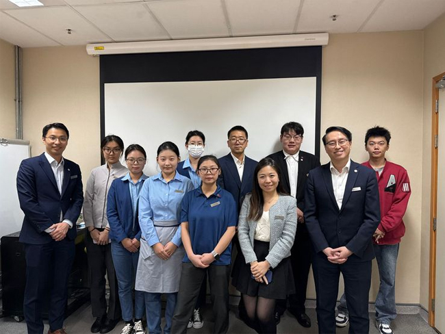 (酒店管理学院 张峰)12月3日,受鲁商集团委托,鲁商(香港)国际贸易有限公司总经理杨林前往青岛酒店管理职业技术学院合作单位——香港东涌喜来登酒店探望走访,开启12月份在港实习生的探望工作。此次走访包括香港天际万豪酒店、沙田万怡酒店、东涌喜来登酒店等6家合作单位,体现了鲁商集团对校企协同发展与人才培养工作的高度重视。