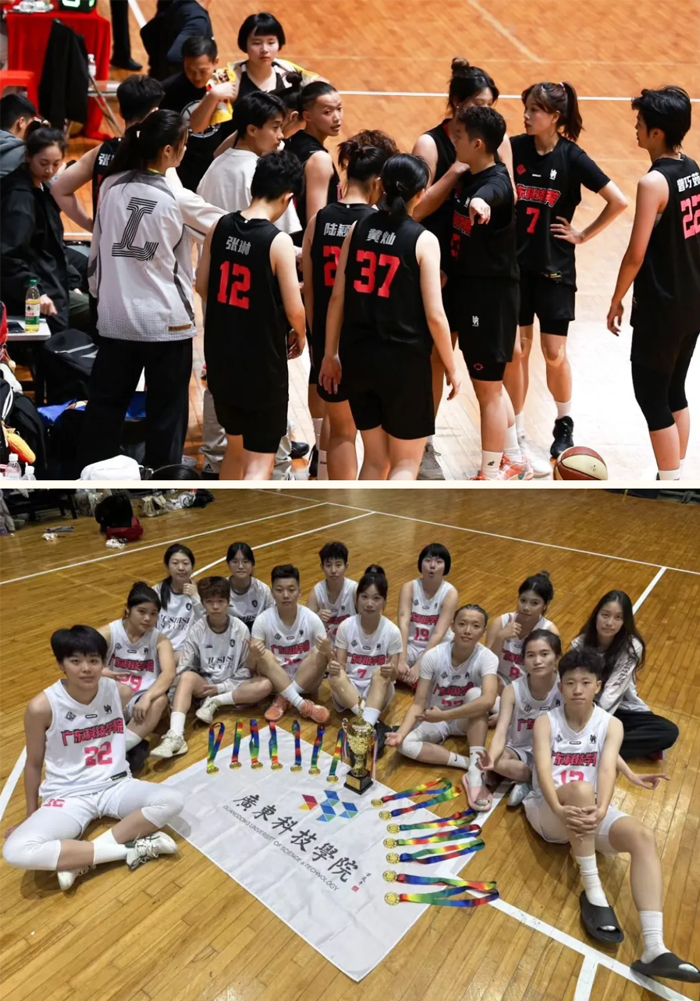 本届赛事高手云集、竞争激烈。广东科技学院男、女子篮球队以扎实的技战术、稳定的心理素质和出色的团队配合在赛场上屡创佳绩。男篮在教练高科、张元煌、张启帆的指导下发挥稳健、战术执行力强,最终夺得甲A组男篮冠军,重回巅峰;女篮在教练王磊、孙墨馨、黄雄汉、刘阳的带领下延续统治力,以出色表现成功卫冕并实现三连冠。两支球队凭借体系化训练、团队协作和稳定的战术执行力,分别摘得男女甲A组冠军,实现广东科技学院篮球省级赛事中同时登顶的里程碑。