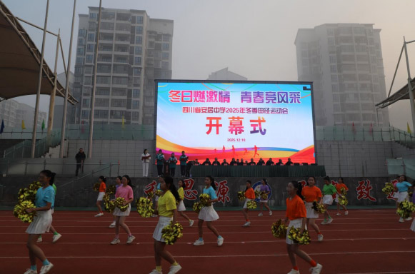 12月10日,四川省安居中学2025年冬季田径运动会开幕式在立和运动场隆重举行。全校师生齐聚一堂,共同见证这场体育盛会。