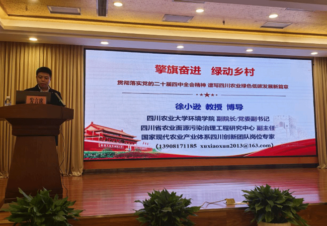 12月19日,2025年四川农村能源绿色低碳发展典型案例发布暨市(州)农能办主任座谈会在成都召开。应四川省农业农村厅农村能源发展中心邀请,四川农业大学环境学院徐小逊教授在会上作了题为《擎旗奋进 绿动乡村》的专题讲座。省农业农村厅相关处室、省农能中心、21个市(州)农能部门负责人及行业专家共30余人参加。