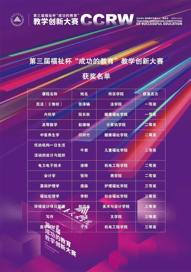经过一天激烈角逐,法学院教师张泽楠等2位教师荣获一等奖,计算机学院教师赵珊珊等5位教师获二等奖,护理福祉学院教师庞淼等5位教师获三等奖。(具体获奖名单如下)