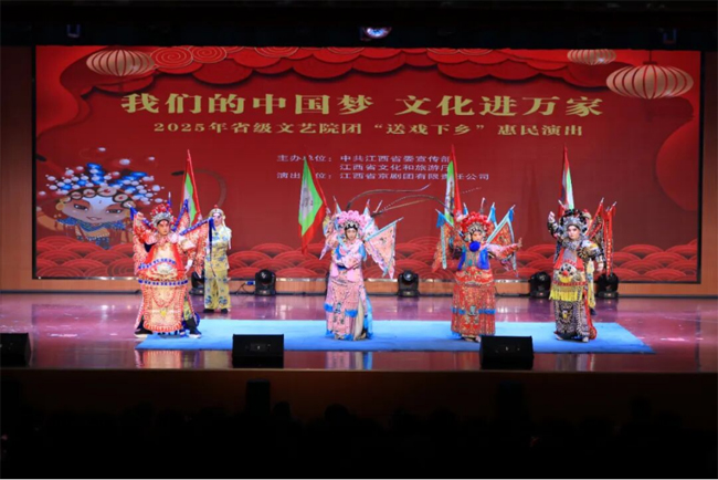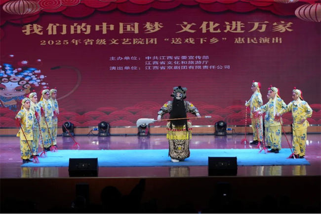 演出在大气磅礴的京歌《赣鄱情》中拉开序幕,生旦净丑精彩亮相瞬间点燃全场。随后《包龙图》选段、《俏花旦》等经典剧目轮番上演,演员们唱腔醇厚、表演细腻,尽显韵味。现代京剧《智斗》、《红灯记》、《打虎上山》等脍炙人口的选段,则让师生们感受到红色题材与京剧艺术融合的独特魅力。特别节目《变脸》技艺精湛,引发现场阵阵惊呼与赞叹。京歌《梨花颂》婉转悠扬,歌曲《何必西天万里遥》、《定军山》、《江山无限》别具韵味,京胡演奏行云流水,全面展现了京剧艺术的博大内涵。最后,全体演员以一出折子戏《青石山》“压台”,以高超的武打和表演技巧将全场推向高潮,生动展示京剧“唱念做打”与“锣鼓经”完美配合的艺术魅力,赢得经久不息的掌声。不少学生为能零距离体验国粹魅力而直呼“过瘾”,并表示切身感受到了传统文化的深厚魅力。