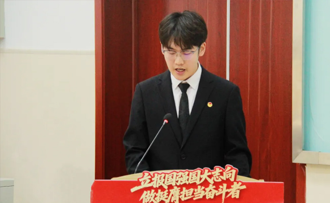 工业与信息化系电气自动化技术24级3班学生白昊轩代表第十五期大学生骨干培训班全体新学员郑重承诺:将珍惜宝贵学习机会,筑牢信仰根基,投身实干历练,砥砺道德修养,努力成长为信仰坚定、能力突出、素质过硬、作风扎实的新时代学生骨干,在民族复兴的伟大征程中书写无愧于时代的青春篇章。