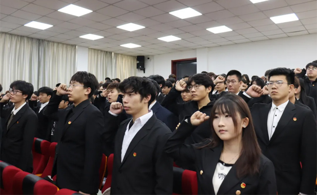 校团委组织部部长董瑞带领全体新学员重温入团誓词。激昂嘹亮的誓言回荡在会场,全体学员在重温誓词中回望入团初心、汲取奋进力量,更坚定了以青年骨干之姿勇担时代使命、投身强国伟业的信念与决心。