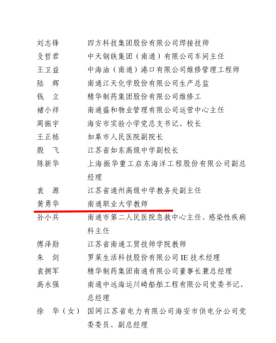 黄勇华老师,作为船舶电气领域的专家,从一名布线技术工人起步,通过不懈努力和持续创新,参与建造了超过300艘各类船舶,并获得了包括“全国技术能手”“江苏大工匠”在内的多项荣誉称号,是享受国务院政府特殊津贴的行业专家。他的工作不仅体现了精益求精、追求卓越的工匠精神,还为船舶通讯导航系统的发展做出了重要贡献。2022年作为高层次高技能人才引进南通职业大学以来,他将丰富的企业实践经验系统融入教学与人才培养,积极参与专业建设、课程改革与教材编写,并依托技能大师工作室,主导或深度参与多项省级产教融合重点项目,有效推动了校企协同育人模式的落地与创新,实现了从“行业技术标杆”向“职教育人先锋”的转型。这份荣誉是对黄老师多年来追求卓越、潜心育人的崇高肯定。它既是对过往辛勤付出与突出贡献的“功勋章”,也必将激励黄老师在教育道路上继续深耕,发挥更大的示范引领作用。