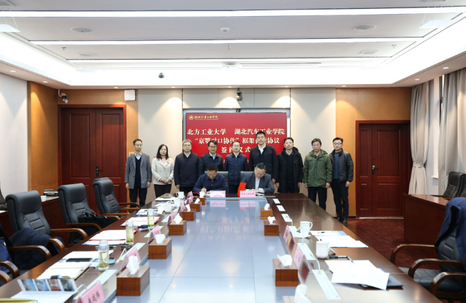 12月24日下午,湖北汽车工业学院与北方工业大学“京鄂对口协作”框架合作协议签约仪式在学校产教大楼三楼多功能会议室举行。北方工业大学副校长卢晓斌、办公室副主任王强莅临校参加会议。湖北汽车工业学院党委副书记、校长李涛,党委副书记、纪委书记、监察专员陈建平热情接待。
