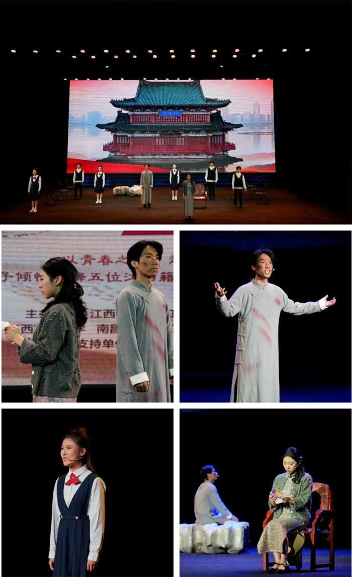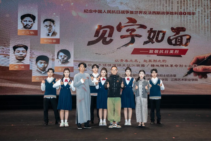 在赴上饶集中营、江西省革命烈士纪念堂实地汲取精神力量后,学院师生将感悟凝练为原创剧目《信笺里的山河》的深情演出。该剧以烈士黄诚的狱中书信为线索,通过舞台艺术生动再现了英烈坚贞不屈的感人事迹与家国情怀。《见字如面——致敬抗日英烈》宣传活动中的正式演出,超越了单纯的艺术呈现,成为一堂生动的“行走的思政课”,师生们以专业的表演让历史记忆鲜活起来,将黄诚烈士“以身许国”的事迹生动展现,让观众通过艺术的形式感受到穿越时空的精神力量,在真情演绎中传承红色基因,实现了艺术创作与思政育人的深度融合,向广大观众传递了跨越时空的信仰力量,激发了爱国情怀与奋斗之志。