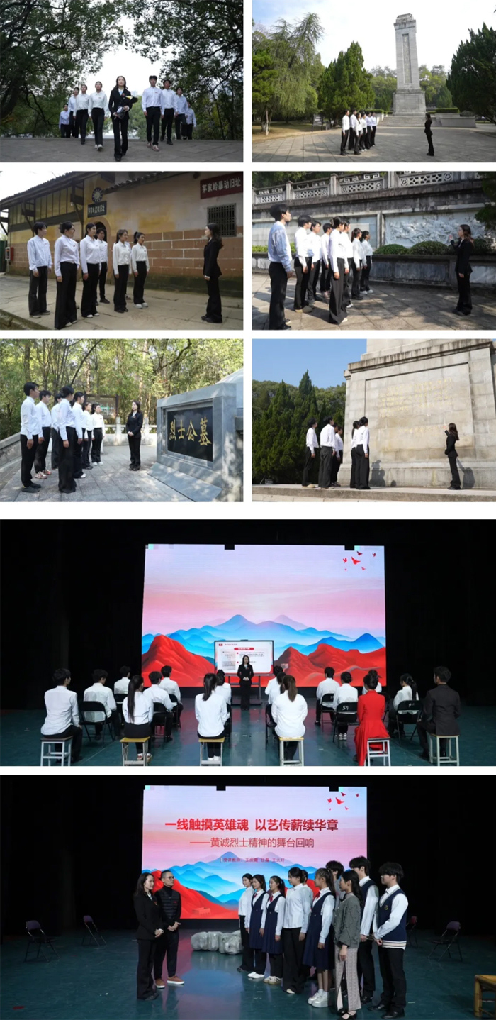 12月12日,江西艺术职业学院师生深度参与了由江西日报社、江西省革命烈士纪念堂联合主办的《见字如面——致敬抗日英烈》大型宣传活动。师生们不仅全程参与了纪念抗日烈士黄诚的原创剧目《信笺里的山河》创排与演出,更将排演过程转化为一堂生动的“行走的思政课”,赴上饶集中营旧址、江西省革命烈士纪念堂等地开展一线教学,在历史现场感悟英烈精神,让红色基因在艺术创作与教育实践中薪火相传。
