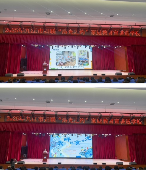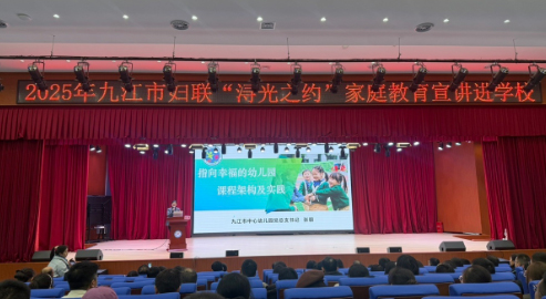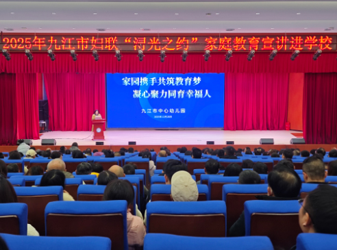 为推动九江市家风文化传承、家庭教育提质、家庭文明培育,扎实搭建家校协同育人的高效沟通桥梁,12月28日上午,九江市妇联“浔光之约”家庭教育宣讲进学校活动——九江市中心幼儿园专场,在九江小学九龙山校区第一报告厅温情启幕。九江市中心幼儿园两园区中小班家长与全园教职工满怀热忱、齐聚一堂,共赴这场以爱为底色、以育为初心的教育之约,携手探寻家校共育的美好路径。