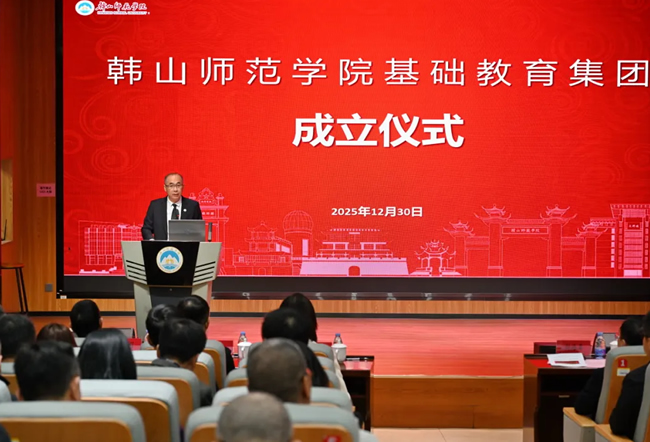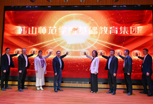 12月30日上午,韩山师范学院基础教育集团成立仪式在韩山师范学院文科楼101会议厅举行。韩山师范学院党委副书记、校长刘海春,潮州市人民政府副市长周茹茵出席仪式并致辞。韩山师范学院党委常委、副校长郑耿忠主持仪式。潮州市教育局局长李桂蓉、潮安区教育局局长陈奕文、饶平县教育局局长曾岳鹏、湘桥区教育局局长余鹏程、潮安区凤凰镇镇长周归宇、潮州市金凤凰公益基金会执行会长吴伟阳等领导嘉宾参加仪式。