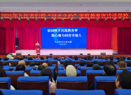 为推动九江市家风文化传承、家庭教育提质、家庭文明培育,扎实搭建家校协同育人的高效沟通桥梁,12月28日上午,九江市妇联“浔光之约”家庭教育宣讲进学校活动——九江市中心幼儿园专场,在九江小学九龙山校区第一报告厅温情启幕。九江市中心幼儿园两园区中小班家长与全园教职工满怀热忱、齐聚一堂,共赴这场以爱为底色、以育为初心的教育之约,携手探寻家校共育的美好路径。