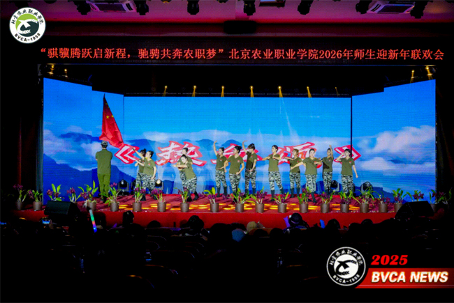 2025年12月31日,北京农业职业学院“骐骥腾跃启新程 驰骋共奔农职梦”师生新年联欢会在长阳校区隆重举行,党委书记周志成,党委副书记、院长张德强,原党委书记崔砚青及领导班子成员与师生代表、离退休老同志代表、线上观众欢聚一堂,在歌舞欢腾中回望耕耘岁月,在温情期许中共赴崭新征程。