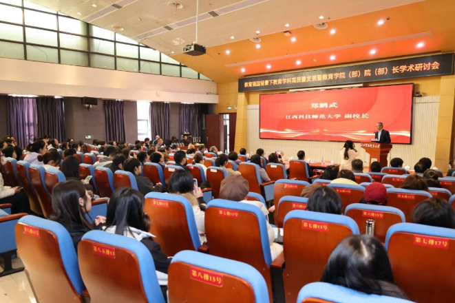 2025年12月28日,“教育强国背景下教育学科高质量发展暨教育学院(部)院(部)长学术研讨会”在江西科技师范大学红角洲校区图书馆学术报告厅召开。副校长郑鹏武致辞。副校长裘指挥主持。
