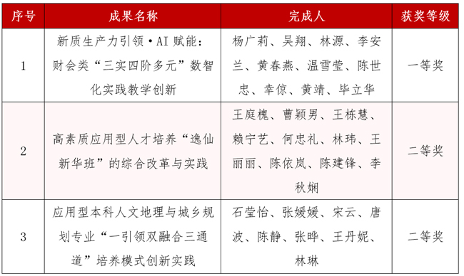 教学成果奖是对学校人才培养工作和教育教学改革成果的检阅和展示。长期以来,学校始终坚持以人才培养为中心,将教学成果培育作为深化教学改革、提升办学质量的核心抓手,持续加强专业内涵建设,全力推动教育教学研究与实践深度融合。此次多项成果获奖,既是学校在人才培养、学科建设、教育教学改革等领域扎实成效的集中彰显,也凝聚着全校教师团队深耕教学、潜心科研、勇于创新的辛勤付出。