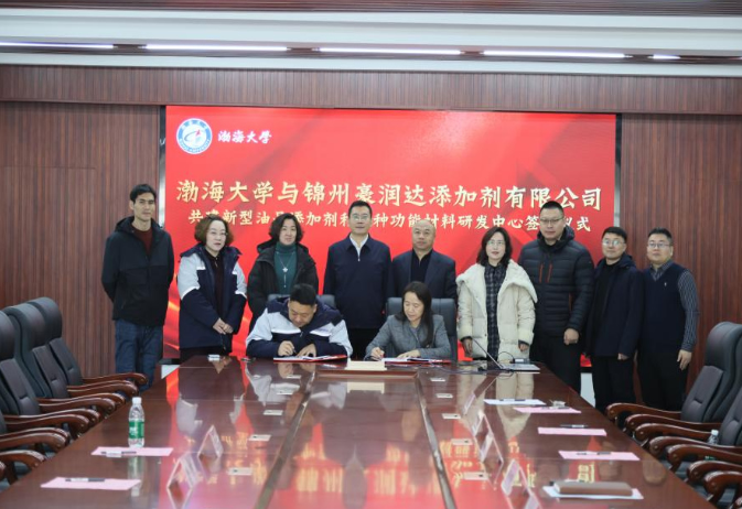 1月5日上午,渤海大学与锦州豪润达添加剂有限公司合作共建“新型油品添加剂及特种功能材料研发中心”签约仪式在渤海大学行政2号楼601会议室举行。此次签约标志着双方在科技创新、成果转化及人才培养等领域的深度合作迈出了坚实的一步。渤海大学党委副书记刘贺,社会合作处处长王大飞、化学学院领导班子及研发中心主任等参加仪式。锦州豪润达添加剂有限公司总经理王乃东、人力资源部负责人赵莹、技术工程师张晓良等企业代表受邀参加。签约仪式由化学学院院长王秀丽主持。
