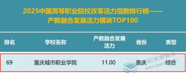 学校荣登2025中国高职院校“产教融合发展活力”百强榜