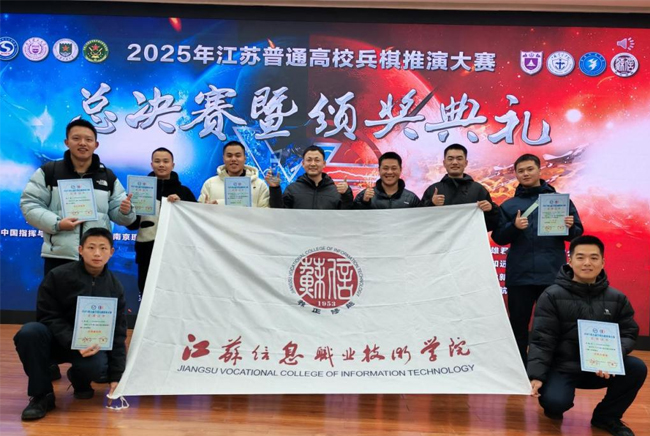 1月11日,江苏省第九届普通高校兵棋推演大赛决赛在南京理工大学举行,由江苏信息职业技术学院定向培养学院学生窦同甫、梁广睿等6名同学组成的两支战队分别获得手工兵棋赛道冠军和亚军。