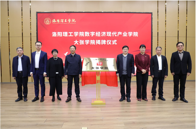 校企双方领导共同为洛阳理工学院数字经济现代产业学院大张学院揭牌。卢志文为理事会成员颁发聘书。