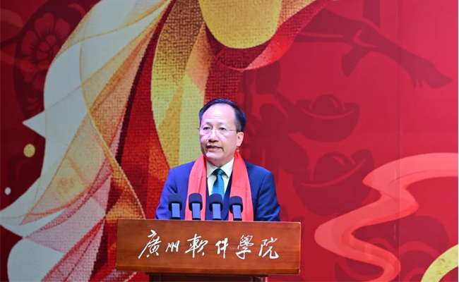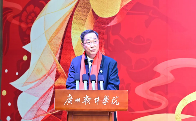 中华海外联谊会副会长、广州软件学院董事长梁冠军,副董事长黄灵枝,终身荣誉校长何大进,校长张强,党委书记兼督导专员刘友坤,副校长徐祥,副校长袁志,副校长曹广福,党委副书记兼纪委书记张广金,副校长张屹,副董事长助理叶倩如与全体教职工欢聚一堂,共迎新春。