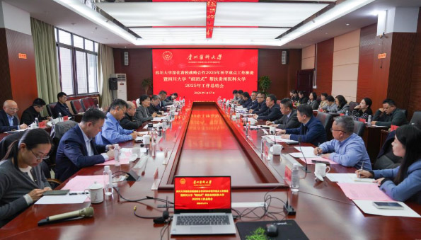 1月17日,四川大学帮扶贵州医科大学临床医学学科工作总结暨2026年度帮扶重点工作座谈会在北京路校区行政楼6楼连廊会议室举行。四川大学党委常委、副校长叶玲,学校党委书记汤磊,校党委副书记、校长俞松,校党委常委、副校长曾柱,附属医院院长左石出席,副校长潘卫东主持。华西医学中心、华西临床医学院(华西医院)、华西第二医院、华西口腔医学院(华西口腔医院)及相关处室负责人,学校、附属医院相关职能部门及临床医学院、口腔医学院负责人参加。