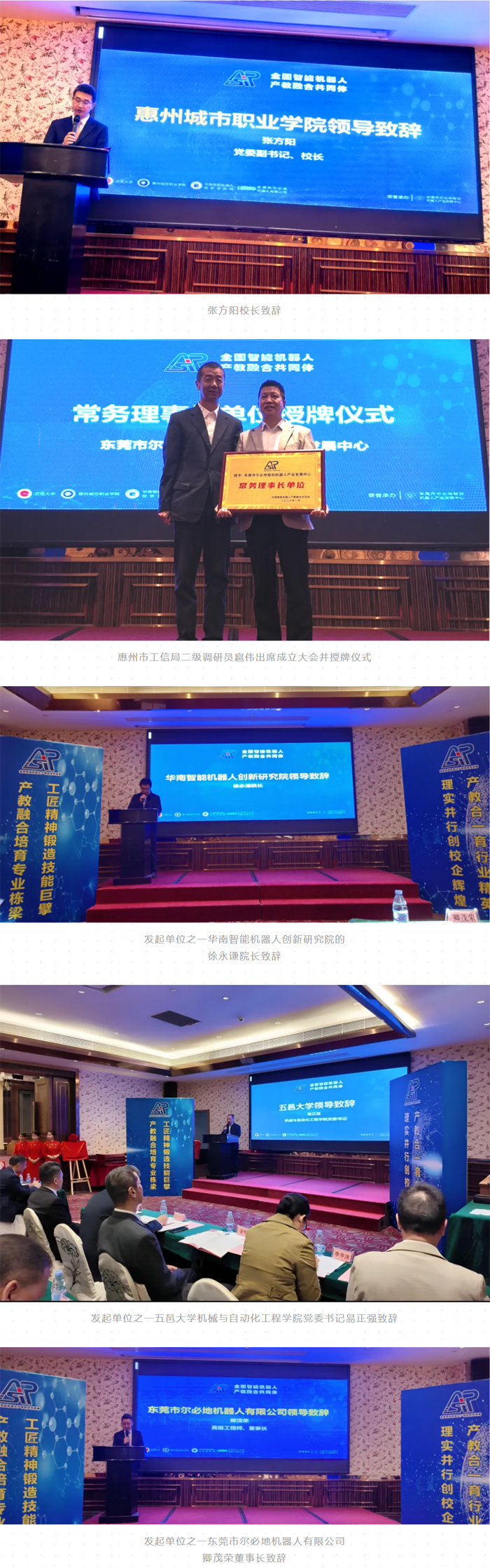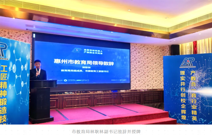 在成立大会上,惠州市委教育工委副书记、市教育局党组成员、市民办教育行业党委专职副书记林耿林出席大会并致辞。他表示,对共同体的成立表示祝贺,认为这是职业教育与产业需求精准对接的创新实践,希望各成员单位以共同体为纽带,深化产学研用合作,为智能机器人产业培养更多高素质技术技能人才,为新质生产力发展注入动能。