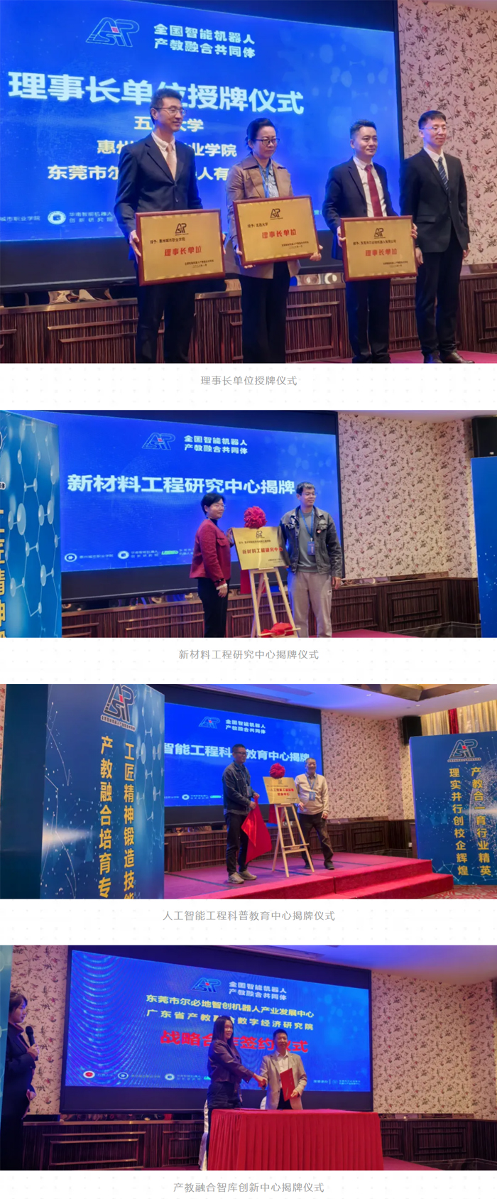 在战略合作签约环节,学院与多家企业、科研机构签署了校企合作协议,此外,由共同体联合惠州学院等单位设立的人工智能工程科普教育中心、新材料工程研究中心与产教融合智库创新中心正式揭牌,将为产业发展提供技术支撑与智力服务。