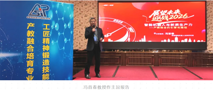 大会现场,学院党委副书记、校长张方阳作为牵头单位在大会上致辞,系统阐述了共同体的建设愿景、组织架构与实践路径,强调共同体将致力于打造覆盖人才培养、技术创新、成果转化与产业服务的全生态体系,为智能机器人产业高质量发展提供坚实支撑。