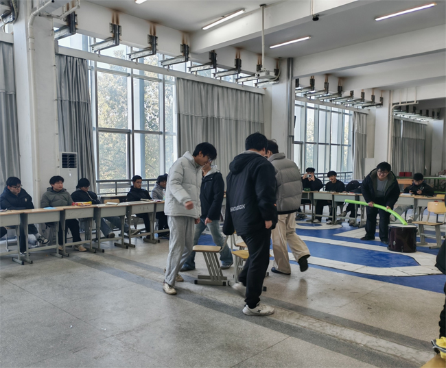 首个游戏“击鼓传花”作为破冰环节,迅速点燃了现场气氛,笑声与掌声此起彼伏,不仅消除了彼此间的陌生感,也让大家在轻松的氛围中认识了新朋友。紧接着进行的四平八稳和蒙眼对决游戏,则巧妙考验了同学们的感知力、方向感,场上“战况”激烈,场下加油声、欢笑声不断。