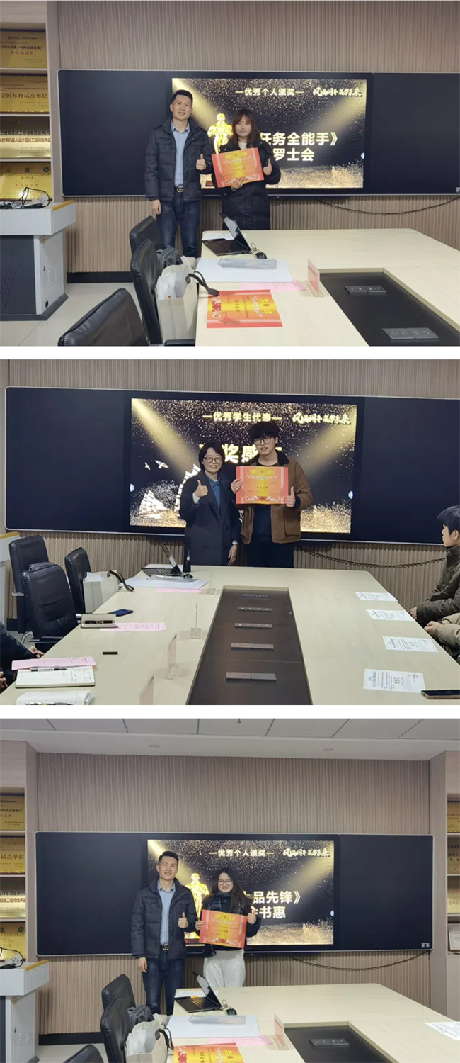 成果分享结束后,进入结业颁奖环节。厦门优优汇联信息科技股份有限公司营销中心负责人林鹏为表现优异的学员颁发荣誉奖项,以此表彰同学们在项目中的积极付出与突出成绩。掌声中,获奖学员们接过荣誉证书,脸上洋溢着自豪的笑容,这份认可不仅是对他们过往努力的肯定,更是对未来深耕跨境电商领域的激励。随后,优秀学员代表陈嘉玲、叶媛婷、朱浩天、余书惠、罗士会依次发言。他们结合自身参与项目的经历,分享了从理论到实践的转化过程,畅谈了在店铺运营、团队协作等方面的收获与感悟,同时表达了对学校和企业提供宝贵实战机会的感谢,以及对未来专业学习的坚定信心。真挚的发言展现了新时代跨境电商学子积极进取、勇于实践的精神风貌。接着,汪畅老师对本次项目实施情况进行全面评价。她首先肯定了校企双导师模式的成效,以及绝大多数同学在项目中展现出的学习热情与执行力,并透露下学期实训任务将全面升级,进一步优化项目设计与考核机制,深化实战教学效果。
