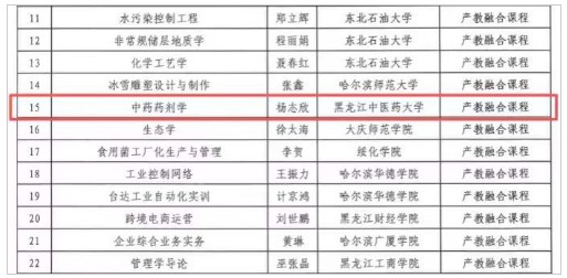 近日,黑龙江省教育厅公布了首批优质本科课程认定结果,黑龙江中医药大学药学院杨志欣教授主持的《中药药剂学》课程被认定为省级“产教融合课程”,入选黑龙江省首批优质本科课程。