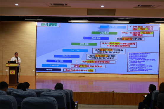 此次交流活动,管理科学与工程博士后、天津大学研究生导师、南宁师范大学研究生导师闫智勇教授亲临指导。新时代教育部职业学校名校长龙卫平工作室成员、广东省职业教育名校长(书记)龙卫平工作室、广东省职业教育名师(匠)曾惕惕工作室,中山中专“丹桂师苑”的核心团队以及中山中专管理干部、班主任代表齐聚一堂,共襄盛举。