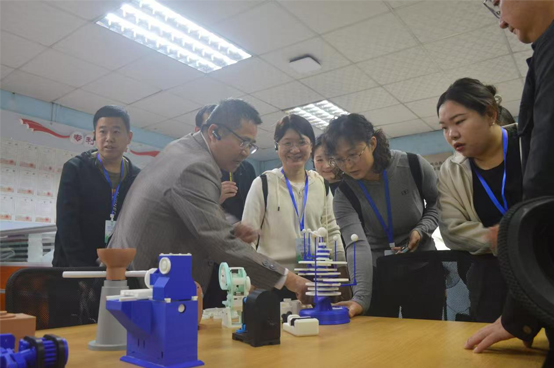 随后,交流团在行政办主任李乔生、德育处主任臧秀源的陪同下开启校园参观之旅。在实训楼信息部实训室,学生演示的工业机器人操作与智能控制系统展示令人印象深刻;在科技楼创意部VR/XR实训室内,虚拟场景与实体模型的融合创新引发连连赞叹;板房区大师工作室中,产教联合体企业代表介绍的“订单式”人才培养模式备受关注;第二办公楼服务部电商直播基地内,学生团队正在进行农产品带货实战演练,实时交易数据成为讨论焦点;新宿舍区的管理与人文关怀设计则获得一致赞誉。