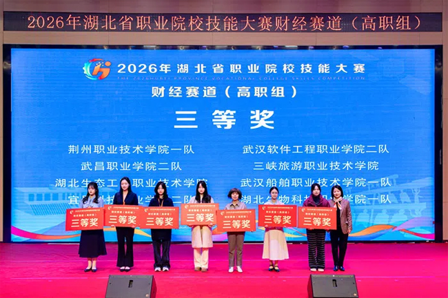 1月18日,2026年湖北省职业院校技能大赛(高职组)财经赛道及业财税融合大数据应用赛项圆满落幕。湖北生态工程职业技术学院旅游管理学院大数据与会计专业师生团队凭借扎实的专业技能和出色的团队协作,在激烈的角逐中脱颖而出,三个项目均揽获奖项:业财税融合大数据应用赛项二等奖、财经赛道三等奖及教师赛项三等奖。此次竞赛充分展现了旅游管理学院在财经类专业建设与人才培养上的显著成效及优质的办学水平。