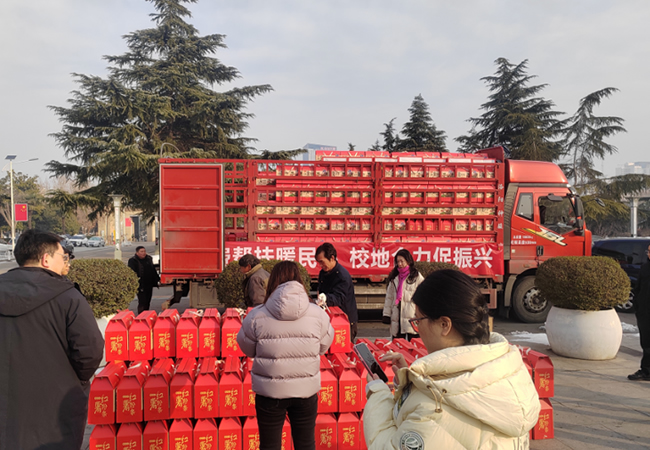 2026年1月23日上午,洛阳理工学院王城校区内暖意融融。五辆满载粉条、小米、面粉的大货车缓缓驶入校园,车身悬挂着“党建引领聚合力,校地协同促振兴”的鲜红标语,成为冬日校园里一道温暖而生动的风景线。这是洛阳理工学院工会从定点帮扶村——洛阳市宜阳县石垛村、陡沟村集中采购的春节福利物资,也是学校以消费帮扶撬动乡村产业振兴的又一务实举措。此次采购总额达30万元,惠及两村数百农户,不仅将“年味”送进教职工家中,更把“希望”种进了乡亲们的心田。