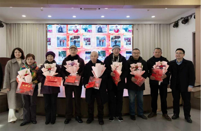 活动伊始,学校宣传片全景展现了校园建设与事业发展提质增效的最新成果,让老同志们直观感受学校发展新面貌。随后,退协理事会负责人、退协小组长及兴趣小组组长代表依次汇报2025年工作开展情况,诗书画兴趣小组教师现场挥毫泼墨,书写春联福字赠予在场老同志,为团拜会增添了浓厚的新春文化气息。活动中与会校领导依次为70岁、80岁、90岁的28名退休教职工寿星送上礼金、鲜花与诚挚祝福。寿星代表赖德光发言时,深情抒发了对学校的感恩之情与深切眷恋。