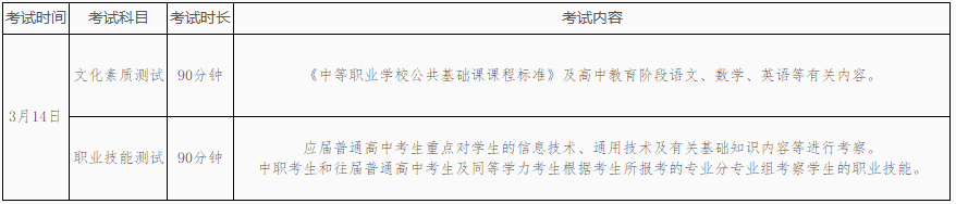 4.D类和E类考生免予文化素质测试。职业技能测试由学校组织,采取笔试方式进行,重点考察学生的职业适应性和职业技能,满分300分。