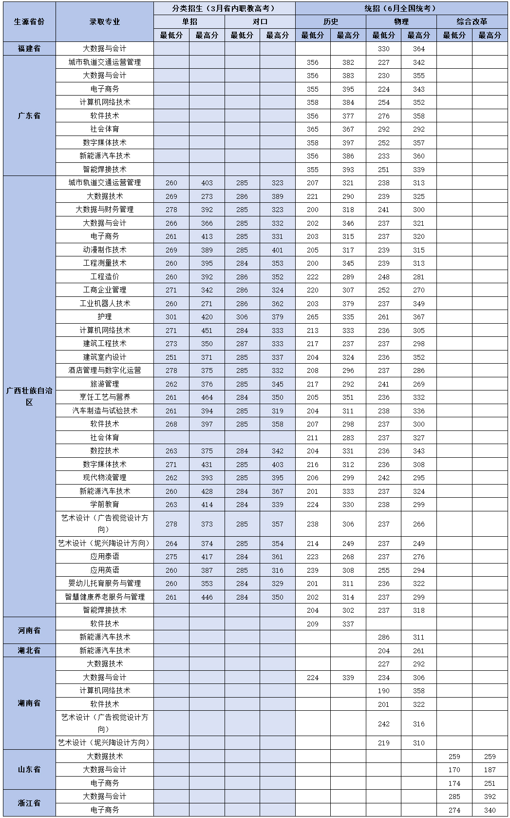 广西英华国际职业学院2025年分类招生及普通高考录取分数线