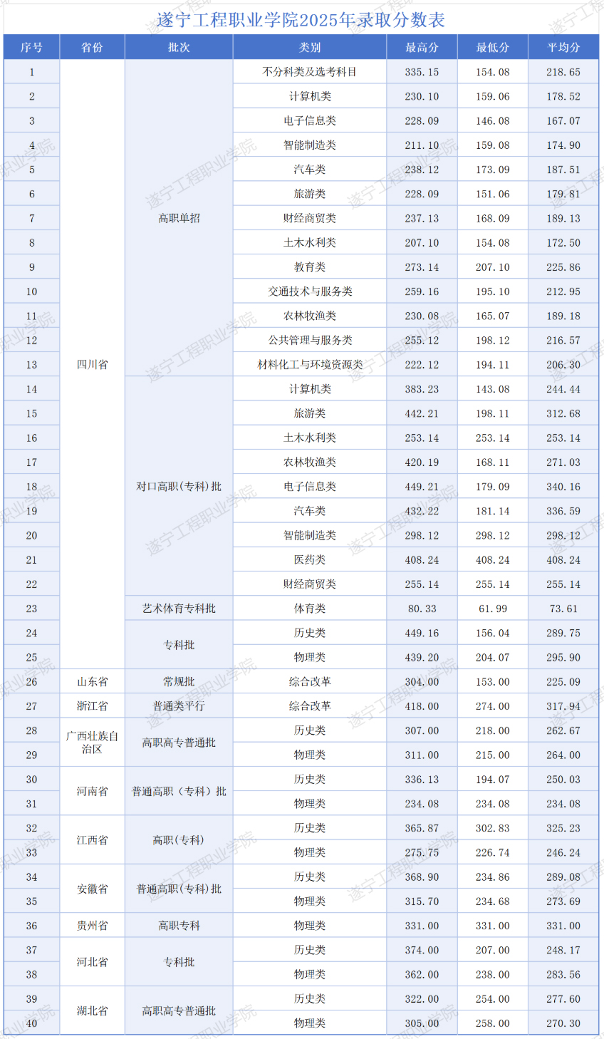 遂宁工程职业学院2025年省内外录取分数线公布