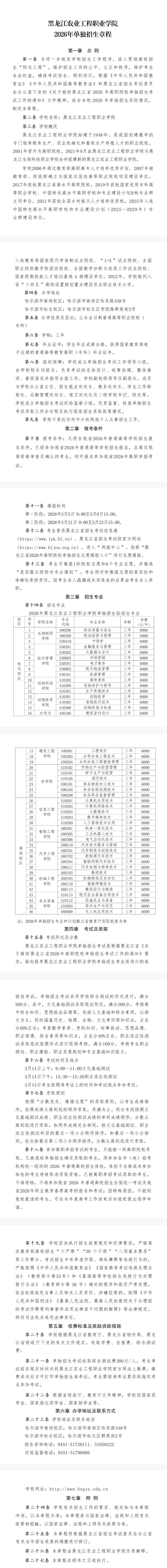 黑龙江农业工程职业学院2026年单独招生章程