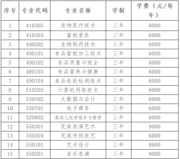 注:专业目录以国家新颁布的专业目录为准,2026年单独招生计划以省教育厅正式批复为准,学费以报到时公示学费标准为准。