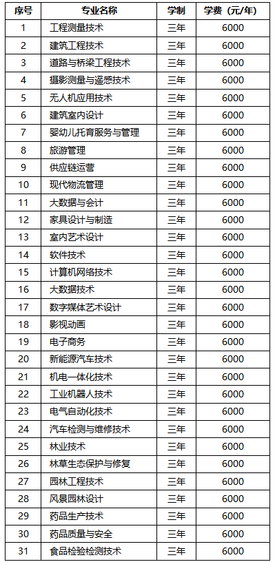 黑龙江林业职业技术学院2026年单独招生拟招生专业及学费