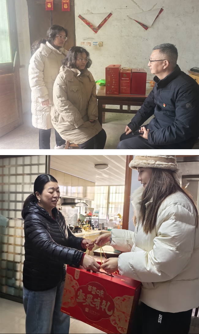 走访中,学院领导和老师与学生及家长亲切交流,细致了解家庭经济状况、生活实际困难,同步反馈学生在校的思想、学习表现,详细讲解国家和学校奖助学金、助学贷款、勤工助学等资助政策,为学生家庭送上慰问品并致以新年祝福。