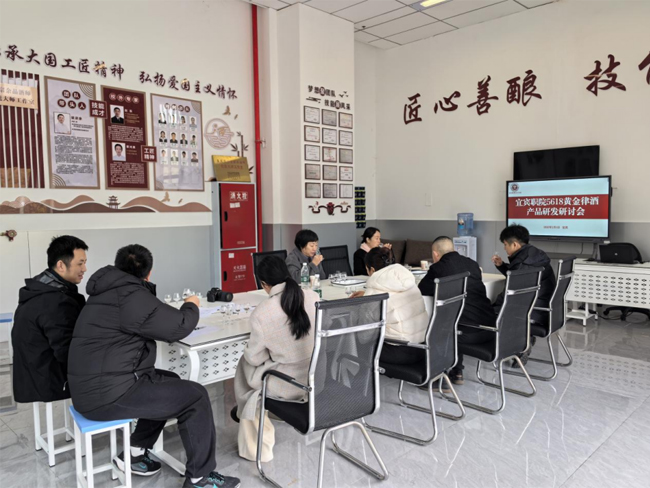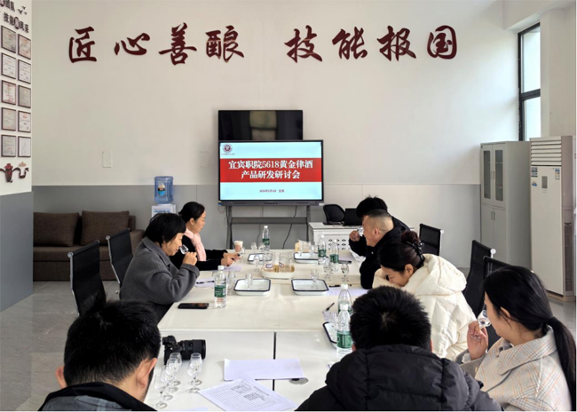 “5618黄金律酒”是宜宾职业技术学院五粮液技术与食品工程学院2025年9月启动开发的五粮浓香新品白酒。2026年2月4日,该学院邀请全国劳动模范、轻工“大国工匠”、国家级白酒评委、客座教授曹鸿英大师,中国白酒大师、国家级白酒评委彭礼群大师莅临学校,对“5618黄金律酒”系列酒的前三轮酒体样品给予专业品鉴与指导。“5618黄金律酒”开发团队参加研讨会。